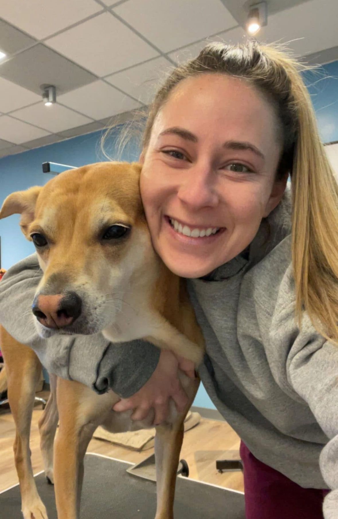 Dog day care attendant watches over a client’s dog in a facility designed for a pet to stay for prolonged periods. They will play/provide the dogs with food (from the owner) and water, and also give them potty walks when needed.